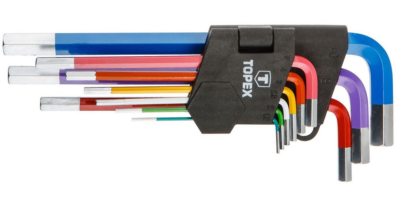 - TOPEX imbuszkulcs készlet 9 db kulccsal, szilárd króm-vanádium acélból.
